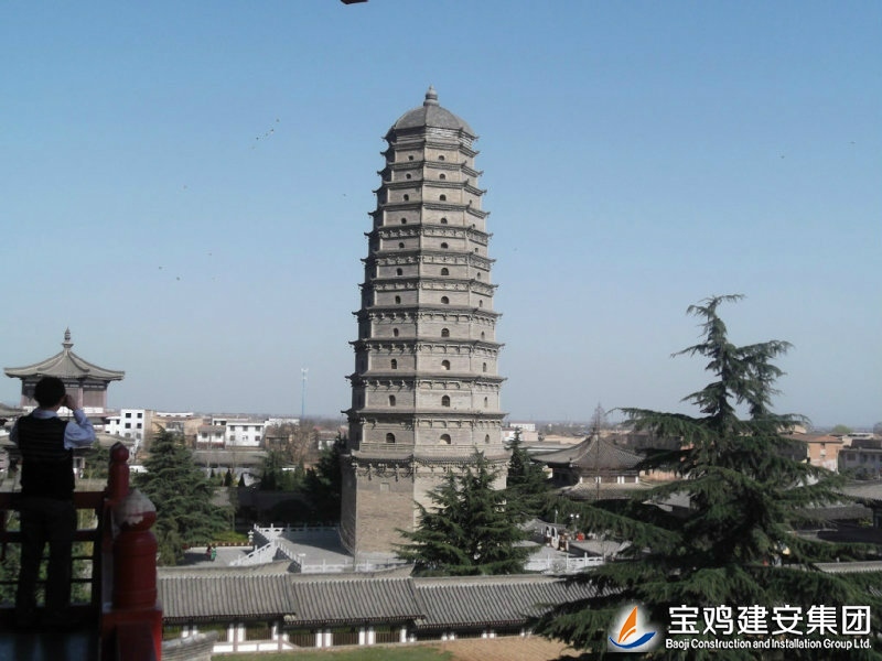The reconstruction project of Famen Temple is constructed by the People's Government of Shaanxi Province. The real pagoda is restored on the original site. The project of Famen Temple Museum is constructed for the purpose of collection and exhibition of the rare treasures unearthed from the underground palace of Tower of Famen Temple. The newly built Famen Temple Museum project includes nine individual projects such as Treasure Pavilion and Multi-function Hall etc. The architectural form is Tang-style architecture, and the modern communications, heating, automatic alarm, fire fighting and other facilities are built internally. The shape of real pagoda is the complete restore type of pagoda in the Ming Dynasty. Its internal part is the binocular cast reinforced concrete structure with the steel staircase and a total of 13 floors. The building area is of ??1699 square meters.